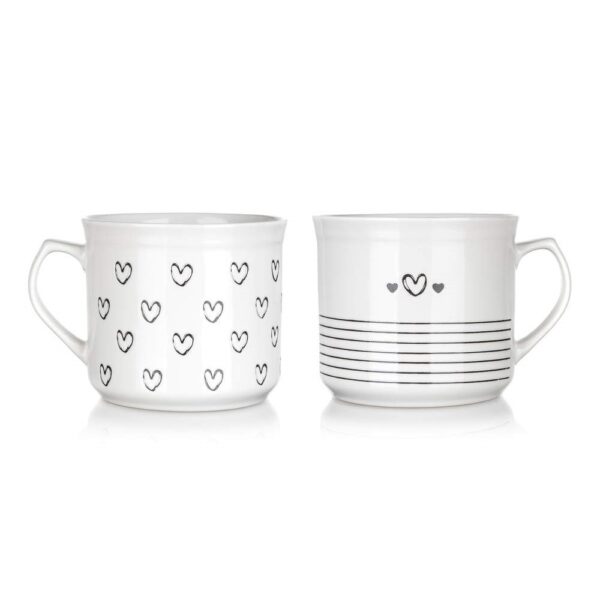 BANQUET Hrnek keramický BIG RUSTICAL 660 ml, mix Hrnek BIG 660 ml s perokresbou černých srdíček, barva bílá, výška 10 cm, průměr 11,2 cm, materiál – keramika. Hrnek lze používat do mikrovlnné trouby a mýt v myčce na nádobí.