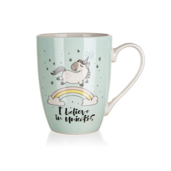 Hrnek UNICORN 340 ml je vyroben z keramiky, vhodný na horké i studené nápoje. Výška hrnku 10,5 cm, průměr horní 8 cm a průměr dolní 5,5 cm. Hrnek lze používat do mikrovlnné trouby a mýt v myčce na nádobí.