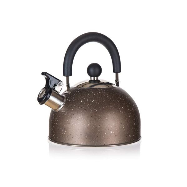 BANQUET Konvice nerezová GRANITE Brown 1,7 l Konvice nerezová GRANITE BROWN 1,7 l na vaření vody, je nedílnou součástí každé domácnosti. Je vyrobena z nerezové oceli 201, síla 0,33 mm, dno 18/0, držadlo sklopné – plast nylon v černé barvě. Konvice je opatřena zvukovou signalizací varu vody – zabudovaná píšťalka ohlásí dosažení bodu varu. Konvici lze používat na všechny typy varných desek včetně indukce.