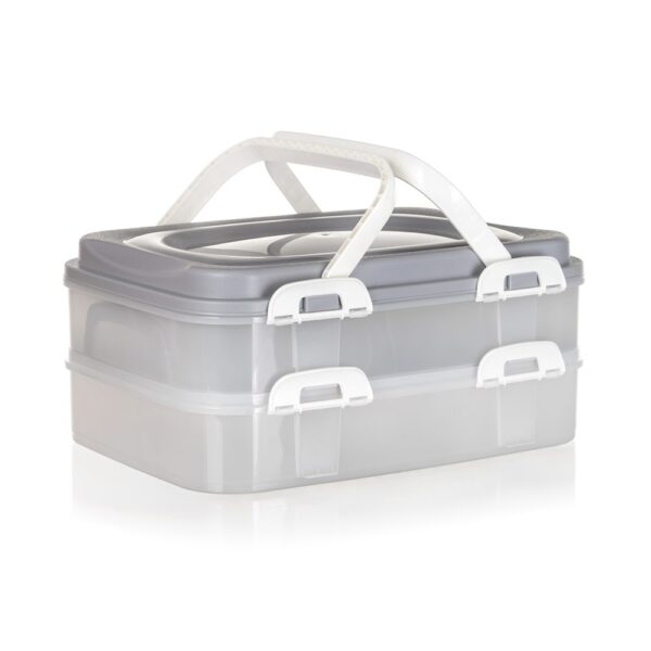 Party box 2 x 7 l s držadly je vhodný pro přenášení potravin na piknik, zahradní oslavu, návštěvu nebo výlet. Jednoduše s ním přenesete chlebíčky, zákusky, ovoce a zeleninu, uzeniny nebo pečivo. Součástí piknikového boxu je 1 vnitřní mřížka s uchy pro snadné vyjímání obsahu boxu. Víko boxu je opatřeno držadly pro pohodlné nošení. Boxy jsou spojeny pevnými uzávěry – klipsy.
