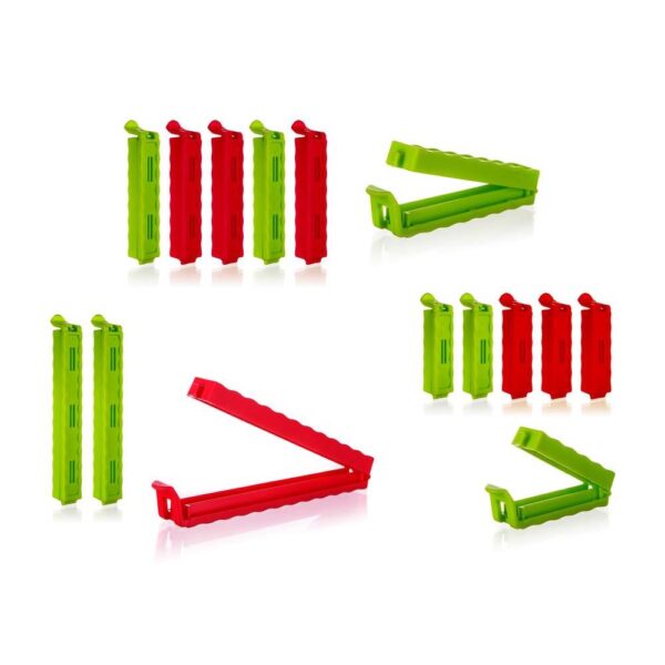 Sada klipsů CULINARIA je vhodná na uzavření sáčků, aby se do potravin nedostal prach ani jiné nečistoty. Balení obsahuje 15 ks, mix barev o velikostech 6,5 cm, 8,5 cm a 12,5 cm.