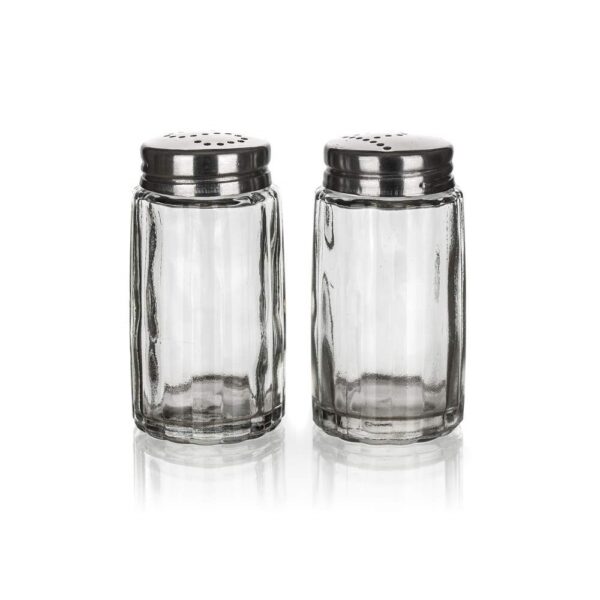 Sada solnička a pepřenka MONO, 2 ks. Víko: nerez 18/0, síla nereze 0,40 mm, tělo: sklo.