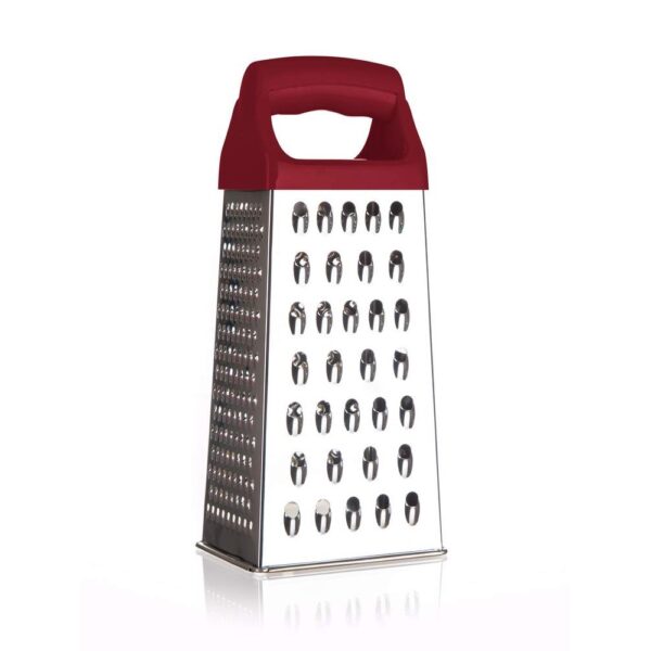Nerezové struhadlo 4stranné CULINARIA Bordo ve standardním provedení ve tvaru A, délka 6,8 cm, šířka 9,2 cm, výška 21 cm. Struhadlo je stabilní při práci a snadno se čistí.