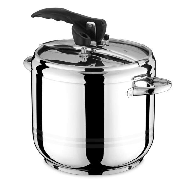 Nerezový tlakový hrnec 7 l s pákovým uzávěrem, průměr 22 cm, nerez 18/0, 3 ventily, silné sendvičové dno. Víko obsahuje tři ventily oproti předchozím modelům, hlavní pracovní ventil, bezpečnostní ventil a silikonový ventil pod přítlačnou sponou pro úplně bezpečné použití. Pákový uzávěr je zabezpečený proti náhodnému otevření. Díky speciálnímu tvaru a bezpečnostnímu ventilu nelze tlakový hrnec během vaření otevřít. Tlakový hrnec je určen pro rychlou přípravu pokrmů a lze jej používat na všechny typy varných desek vč. indukce. Hrnec je v silnostěnném celonerezovém provedení, má silné sendvičové dno a lze ho používat na všechny typy varných desek.