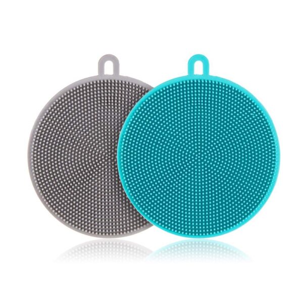 2dílná sada silikonových houbiček 11 cm slouží k mytí nádobí. Tyto univerzální mycí a čistící houbičky za pomoci silikonových štětinek odstraní zbytky jídla z nádobí aniž byste museli houbičku často měnit. Stačí ji jen důkladně omýt. Díky silikonovému materiálu odolnému vyšším teplotám můžete houbičku mýt v myčce na nádobí. Poslouží také jako chňapky nebo s nimi snadněji otevřete sklenice.