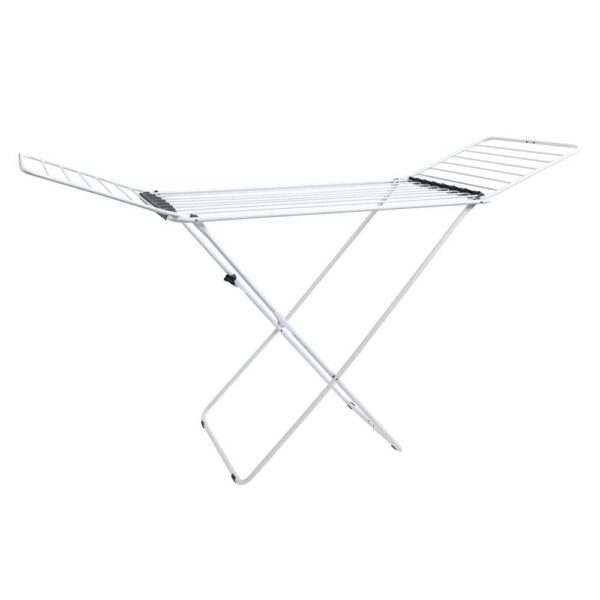 Stabilní přenosný sušák na prádlo nabízí cca 20 metrů sušící plochy, což představuje až dvě plné pračky prádla. Boční křídla jsou vhodná na sušení delšího prádla. Praktickým pomocníkem je držák na sušení ponožek. Velkou výhodou je stabilní konstrukce z bílých trubek, doplněných plastovými držáky v šedé barvě. Bezpečnému použití napomáhá také dětský bezpečnostní zámek, omezující možnost nechtěného složení a případného pádu.