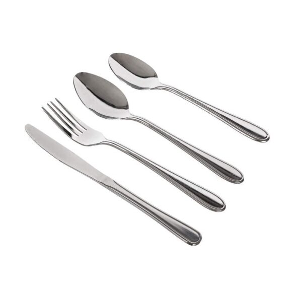 24dílná sada příborů APETIT DAPHNE se skládá: vše po 6 ks – nůž 20,9 cm, vidlička 19 cm, lžíce 18,8 cm, čajová lžička 13,5 cm. Povrchová úprava: nůž hand polish, ostatní: tumble polish, tloušťka nůž: 3,0 mm, vidlička / lžíce: 1,8 mm, lžička: 1,5 mm.
